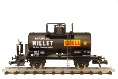 Wagon ETS en métal Citerne "SHELL / Marcel Millet" avec plateforme de freinage de la compagnie SNCF