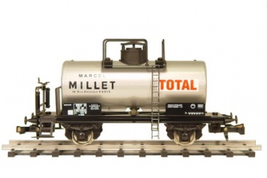 Wagon ETS en métal Citerne "TOTAL / Marcel Millet" avec plateforme de freinage de la compagnie SNCF