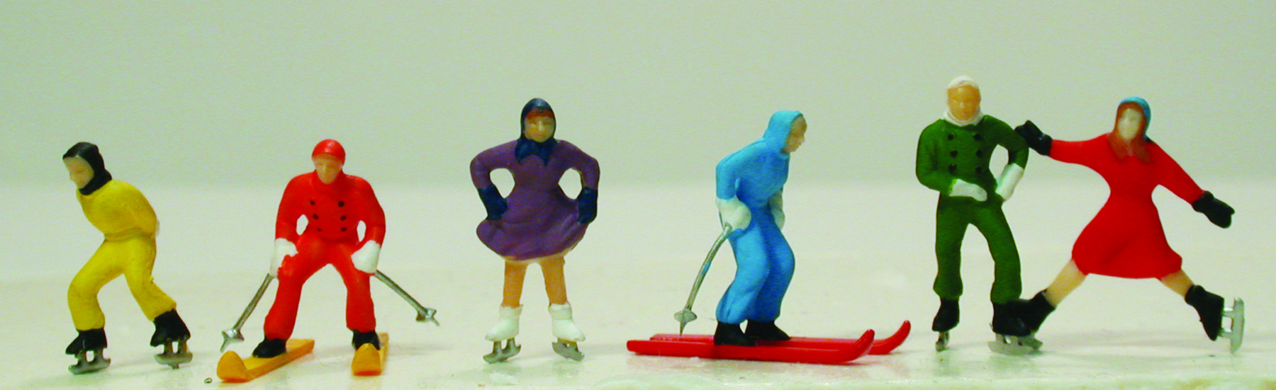 6 personnages skieurs patins a glace scene hiver HO 1/87