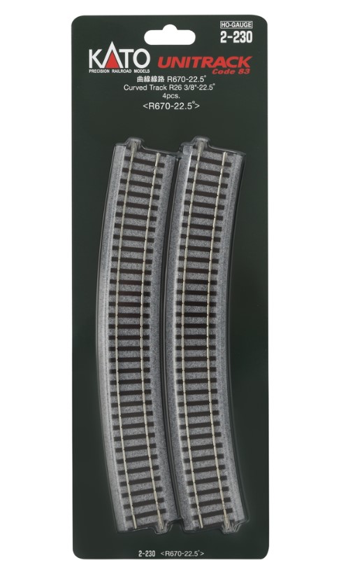 2-230 Rails courbes Ballastés R670 – 22,5° KATO Train HO 1/87