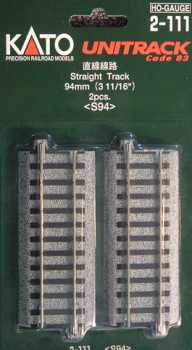 2-111 Kato 2 Rails Droits Ballastés 94 mm HO 1/87