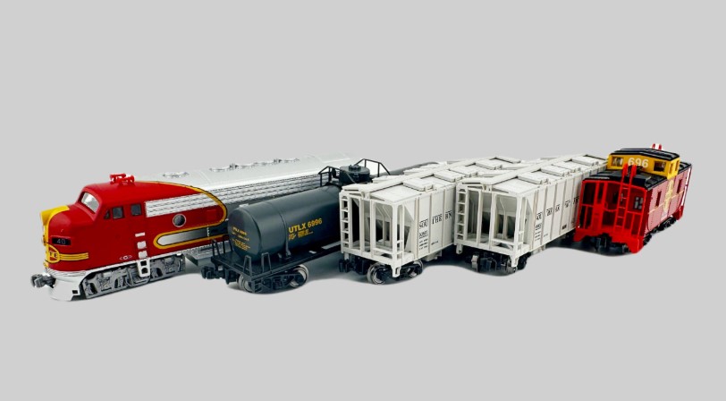 Chaque coffret de train de marchandises F7 comprend une locomotive EMD F7A de Kato , deux wagons-trémies couverts ACF, un wagon-citerne et un fourgon de queue peint de façon appropriée. Les locomotives F7A sont compatibles DCC et peuvent facilement être mises à niveau pour la commande numérique. Les trains peuvent être complétés par une grande variété de wagons, notamment le coffret de train de marchandises mixtes de Kato USA, également disponible, qui propose plusieurs wagons de marchandises peints individuellement dans un emballage similaire.