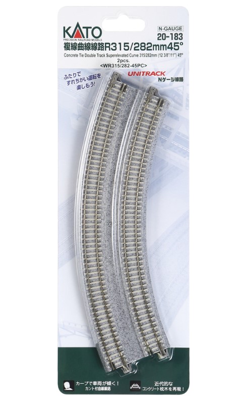 20-183 KATO UNITRACK 2 rails doubles courbes 282-315mm 45° N
