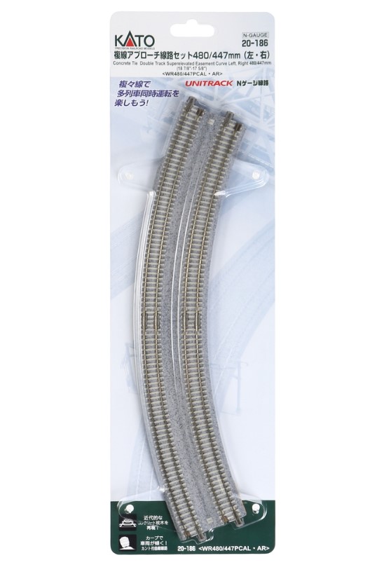 20-186 KATO UNITRACK rails doubles courbes 480/447mm 22.5° surelevé en 2 rails