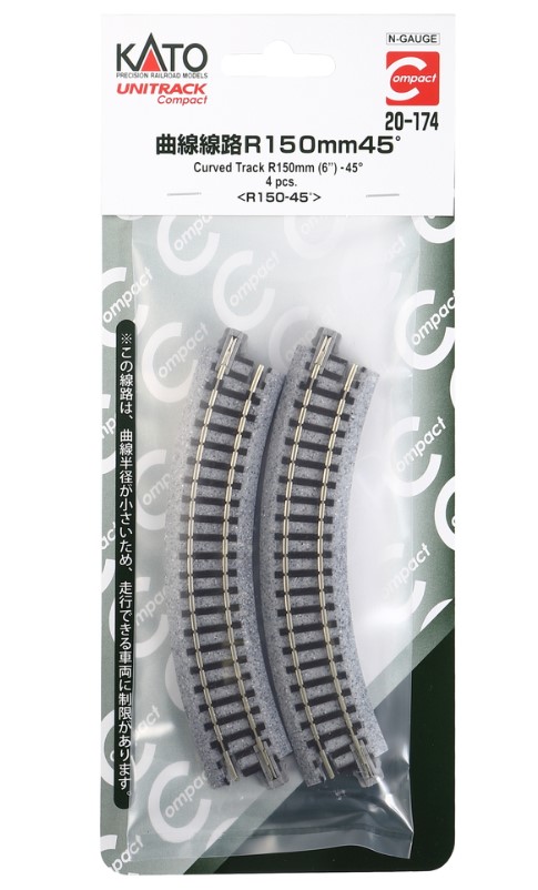 20-174 KATO Unitrack 4 Rails courbe r=150mm 45dg R150-45 ballast N
