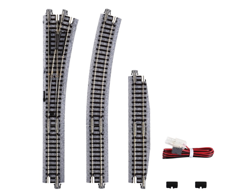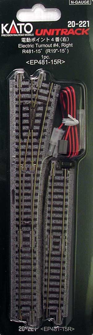 KATO UNITRACK aiguillage electrique Droite longueur=248mm rayon=481mm 15° avec ballast et accessoires de voies, moteur electrique d aiguillage et cables de raccordement