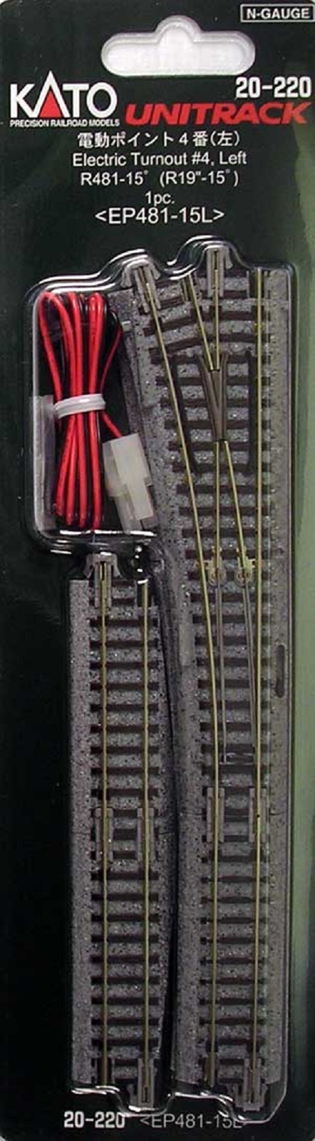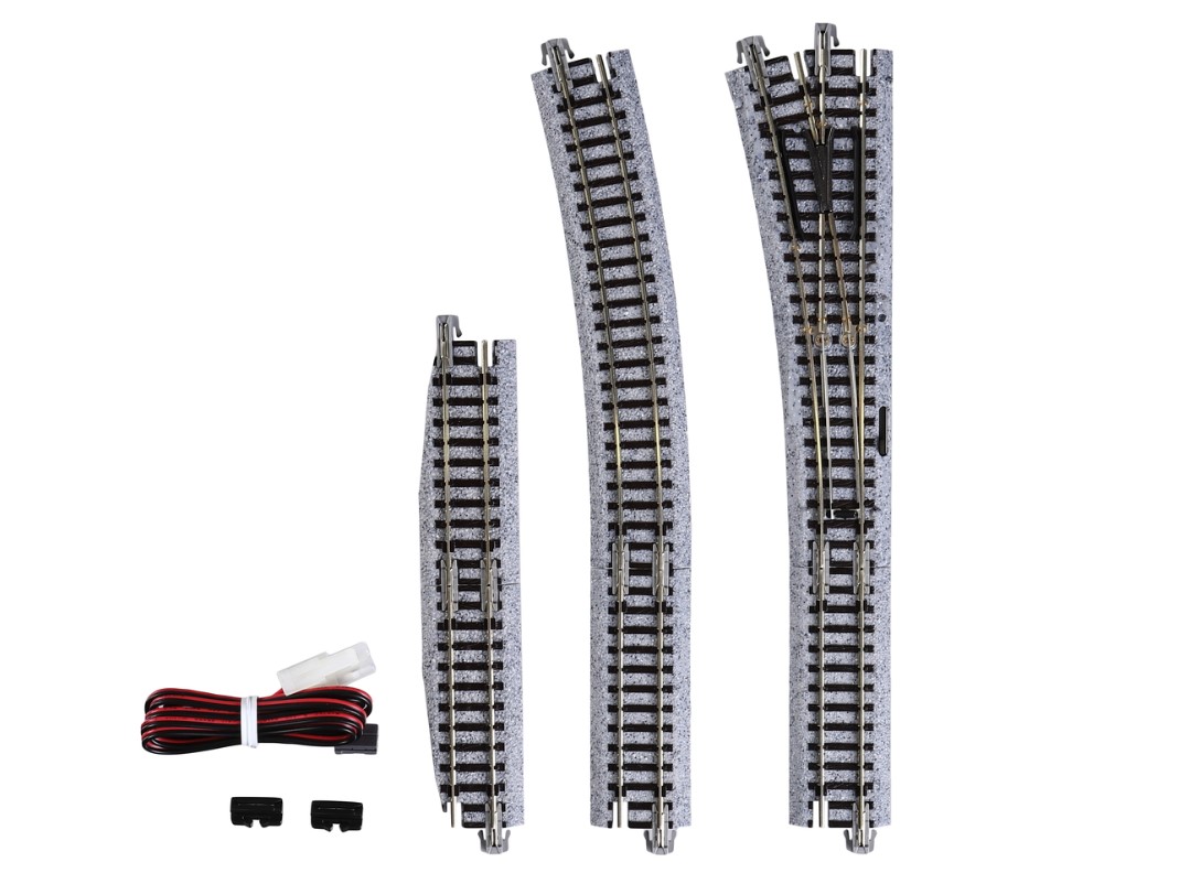 KATO UNITRACK aiguillage electrique Gauche longueur=248mm rayon=481mm 15° avec ballast et accessoires de voies, moteur electrique d aiguillage et cables de raccordement