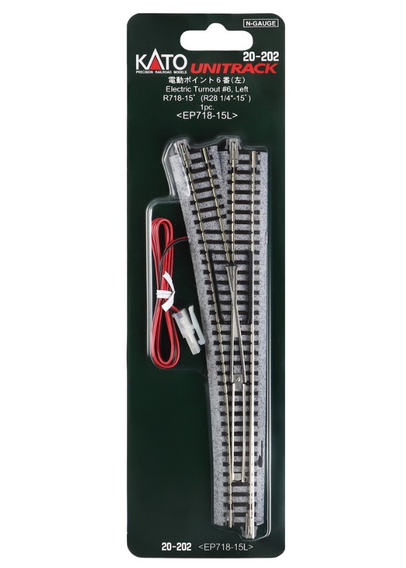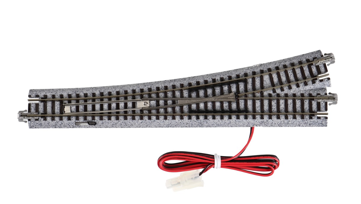 Aiguillage électrique gauche Rail droit=186mm / Rayon=718mm 15° avec ballast,
