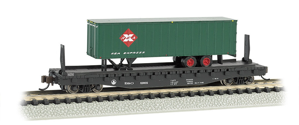 Wagon Fret 52'' plat transport remorque camion piggyback B&O N 1/160